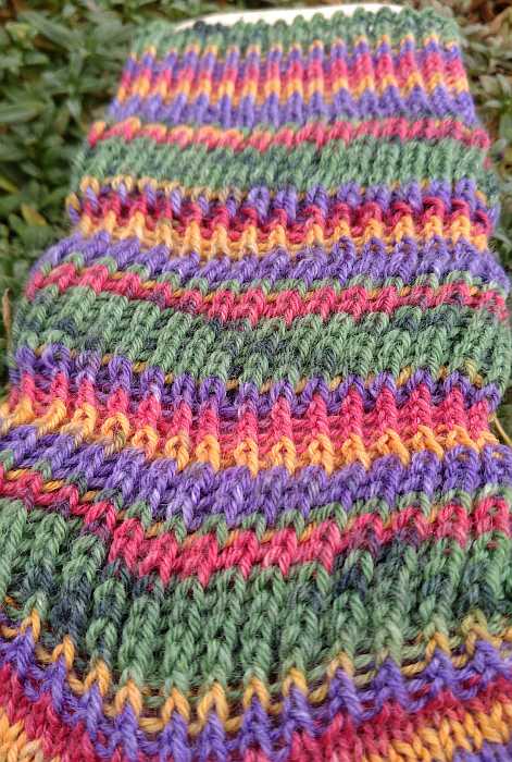 1. Sehr schön geworden! Ich hab die auch schon mal gestrickt, hatte aber sehr deutliche Gässchen zwischen den Nadeln und habe sie dann wieder geribbelt. Deine sind toll – mir gefällt auch die Färbung sehr gut!