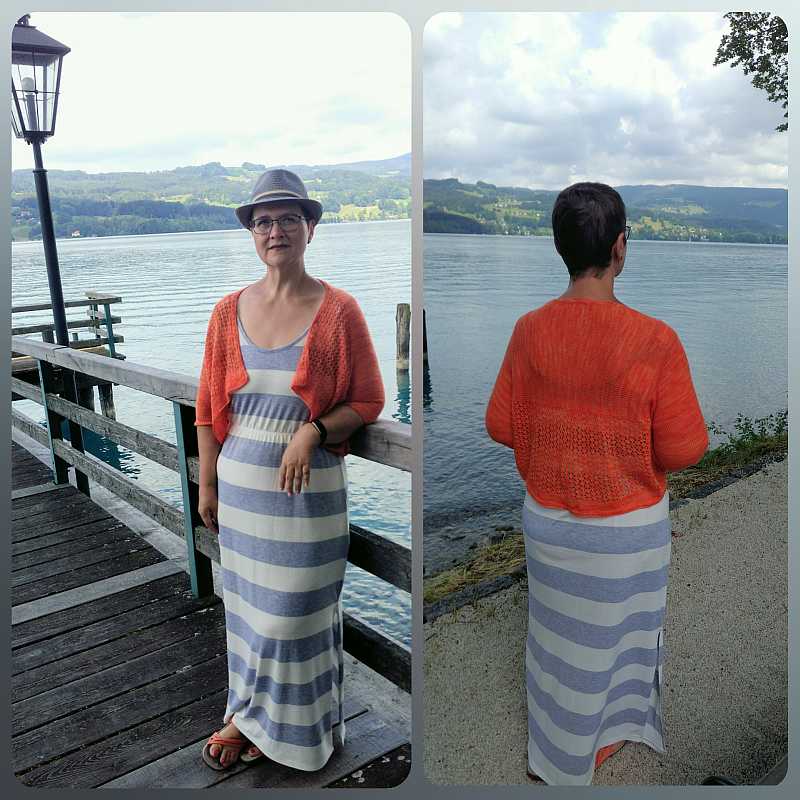 So begeistert wie ich von meinem ersten Reagan Cardigan bin, musste noch eine sommerliche(re) Variante aus Lacegarn her, etwas kürzer und mit dreiviertel Ärmeln. Passend zu meinen Sommerröcken und Kleidern.