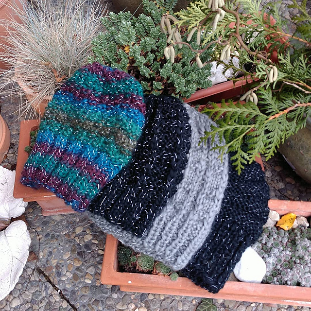 Die schwarze Mütze für meinen Mann habe ich am klassischen “Wurm” (freie Anleitung bei Ravelry) orientiert.
