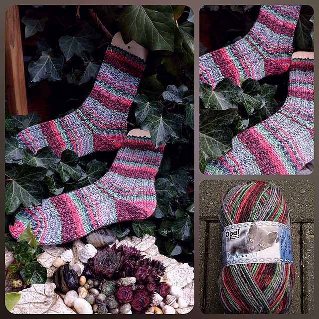 Das zweite Paar habe ich grob an der Anleitung “Winterscape Socks” von Kay Redding orientiert (freie Anleitung bei Ravelry). Es ist gestrickt aus Opal Sockenwolle der Kollektion Popcorn in der Färbung “Rupert&Heide” (von 2016).