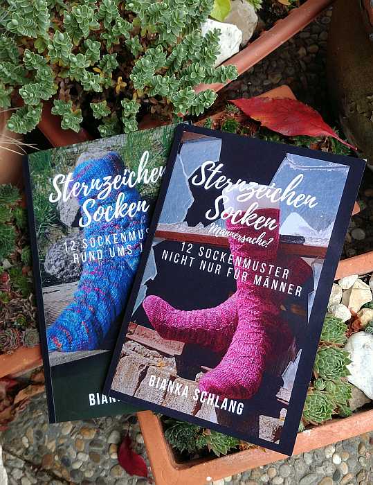 Das erste Paar ist aus einem Opal Abo Knäuel von Sept.2016 gestrickt, mit dem Muster “Waage” aus dem 2. “Sternzeichensocken” Buch von Bianka Schlang. Zwei wirklich tolle Musterbücher für alle Sockenliebhaber!!! (Werbung, unbezahlt, unbeauftragt!!!)