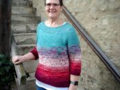Verbraucht habe ich insgesamt ca. 3,3 Stränge (1.196m). Von der ersten Farbe fast genau einen Strang, von allen anderen Strängen je knapp 50g. Gestrickt mit NS 3,75mm, die Bündchen mit 3,25mm. Da der Original “Ingalls” Sweater (von Caitlin Hunter/Boyland Knitworks) als Oversize Teil gedacht ist, was ich für mich so aber nicht wollte, habe ich hier eine Maschenzahl zwischen Gr. S und M gewählt und wie erwähnt einige eigene Abwandlungen gemacht.