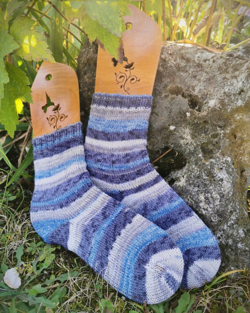 Garn: KKK Strumpfgarn, Farbe 57531, Verbrauch 60g für eine Gr. 38, gestrickt mit NS 2,25mm.
