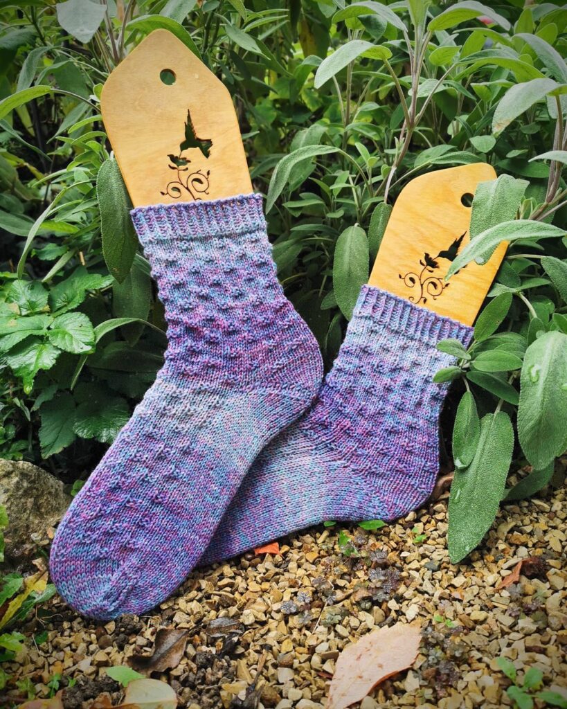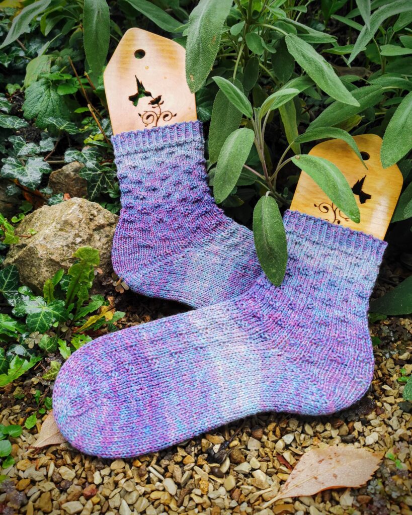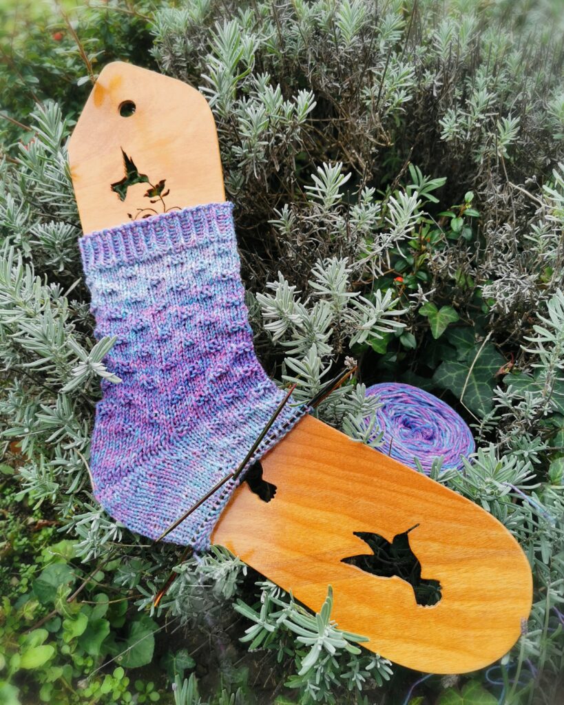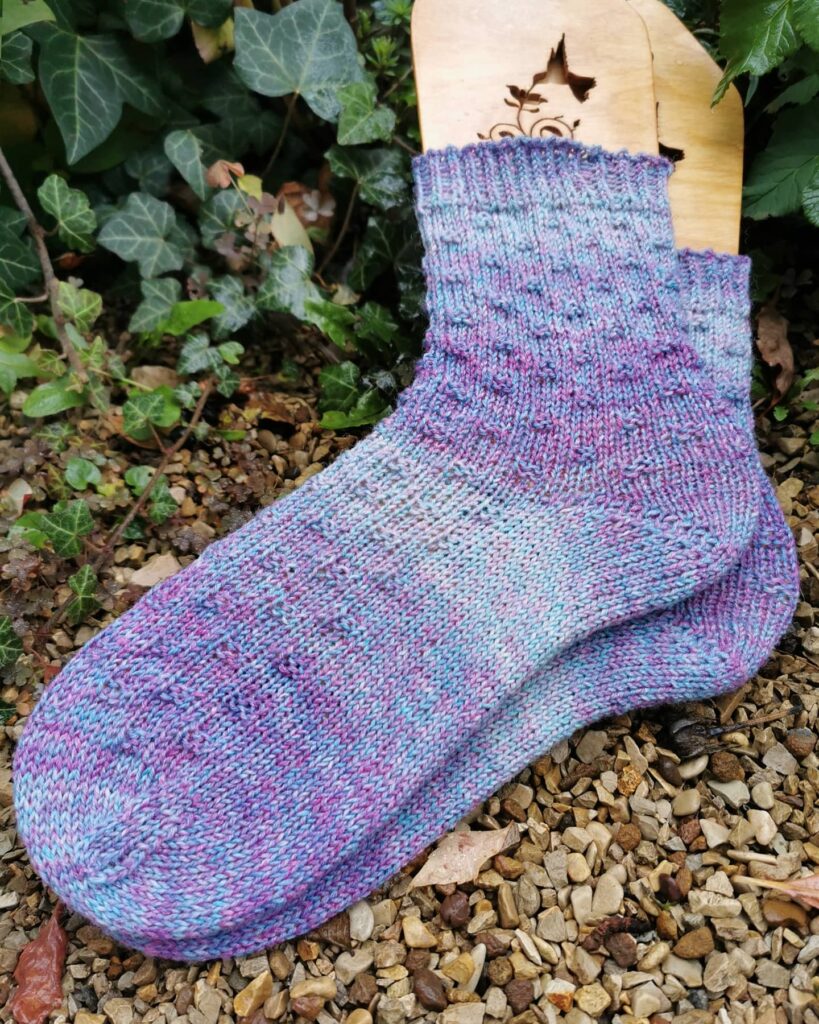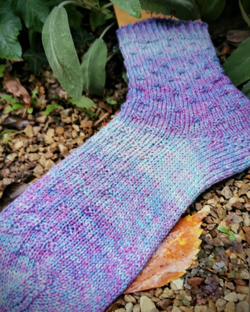 Gestrickt aus einem Opal Aboknäuel von März 2017. Mit 2,5mm Nadeln und 56 Maschen lag der Verbrauch für eine Gr. 40 bei nur 54g.
