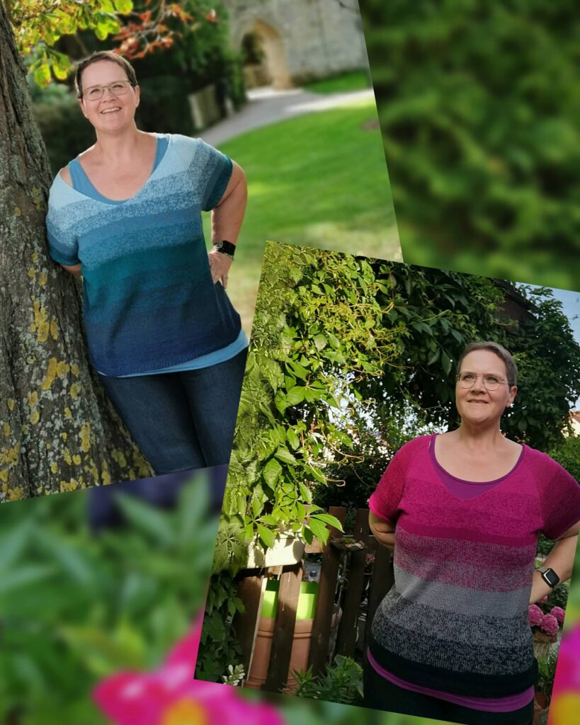 Dieses habe ich ich einen Tick kleiner gestrickt als das blaue Shirt vom letzten Jahr, da dieses durchs Tragen etwas gewachsen und nun doch fast einen Tick zu oversized ist.