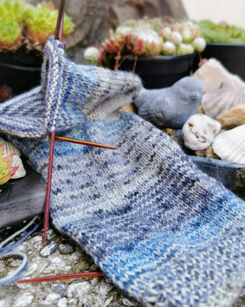 Das Garn war im letzten Jahr in einem Überraschungspaket von Buttinette, das ich mir vom damaligen Geburtstags Gutschein gekauft habe. Ich kannte es davor nicht und muss auch leider sagen, dass ich es nicht empfehlen kann. Es ist sehr “fein” und eher labberig. Ich kann mir tatsächlich nicht vorstellen, dass Socken daraus recht langlebig sind. Wahrscheinlich bin ich auch zu verwöhnt durch das langjährige Stricken mit den Opal Garnen. Aber auch die Buttinette Eigenmarke ist von überragender Qualität. Dieses hier jedoch überzeugt mich leider gar nicht.