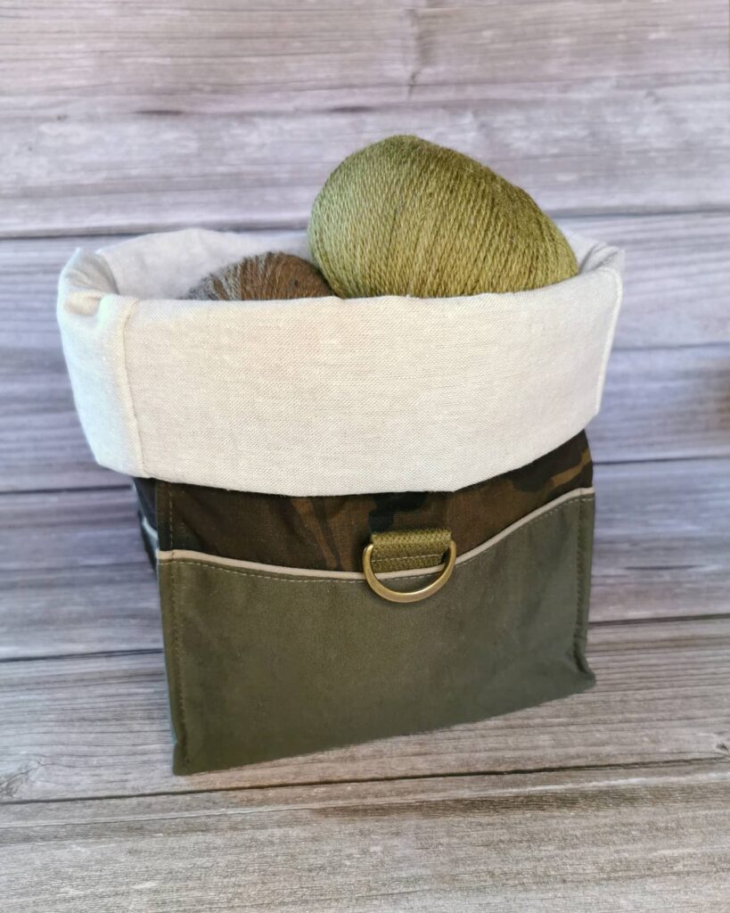 Diese Tasche heißt “Klärchen” und hat für mich die perfekte Form und Größe für kleinere (Socken) bis mittelgroße Projekte. Total schön auch, dass man sie zu einem Körbchen umfunktionieren kann. So steht sie zu Hause neben mir, mit dem aktuellen Projekt und ist schnell für unterwegs mitgenommen. Ich liebe es. 🤗