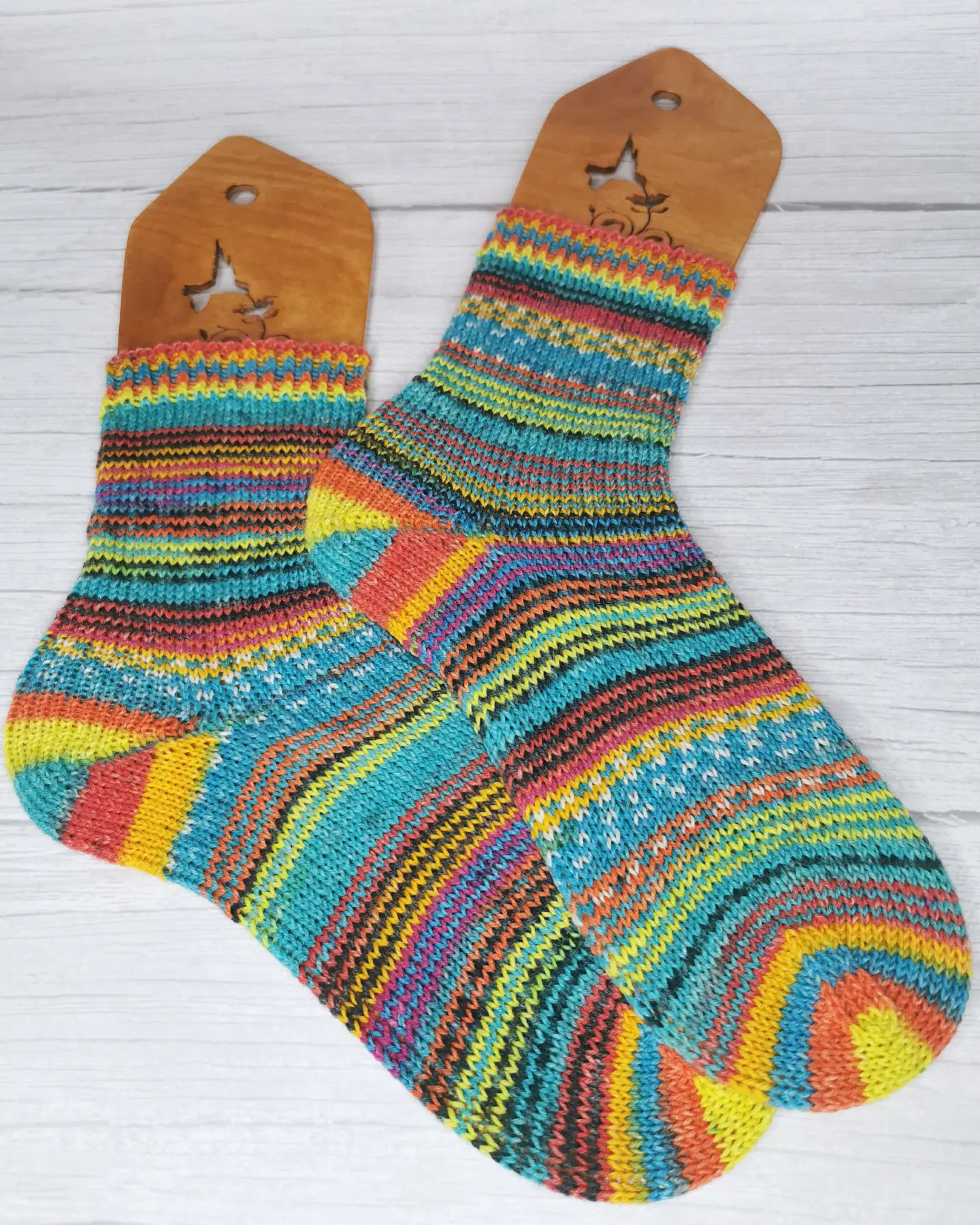 Natürlich gibt es auch dieses Jahr wieder Restesocken. Die Reste werden ja nicht weniger und diese Art der Resteverwertung macht mir immer wieder große Freude. Es ist einfach spannend was am Ende dabei heraus kommt.