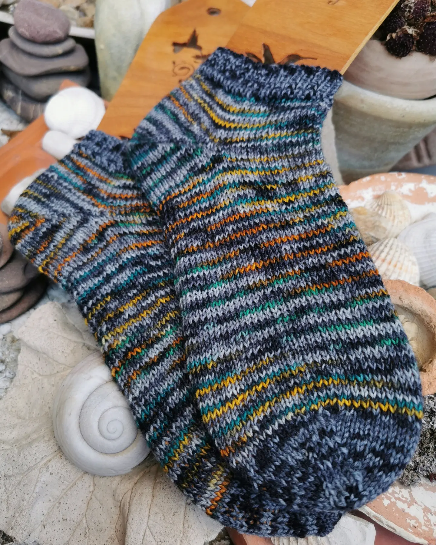 Für Bündchen, Ferse und Spitze habe ich die Lammy Yarns Running Multi verwendet. Das Garn war mal in einem Überraschungspaket der Buttinette enthalten.