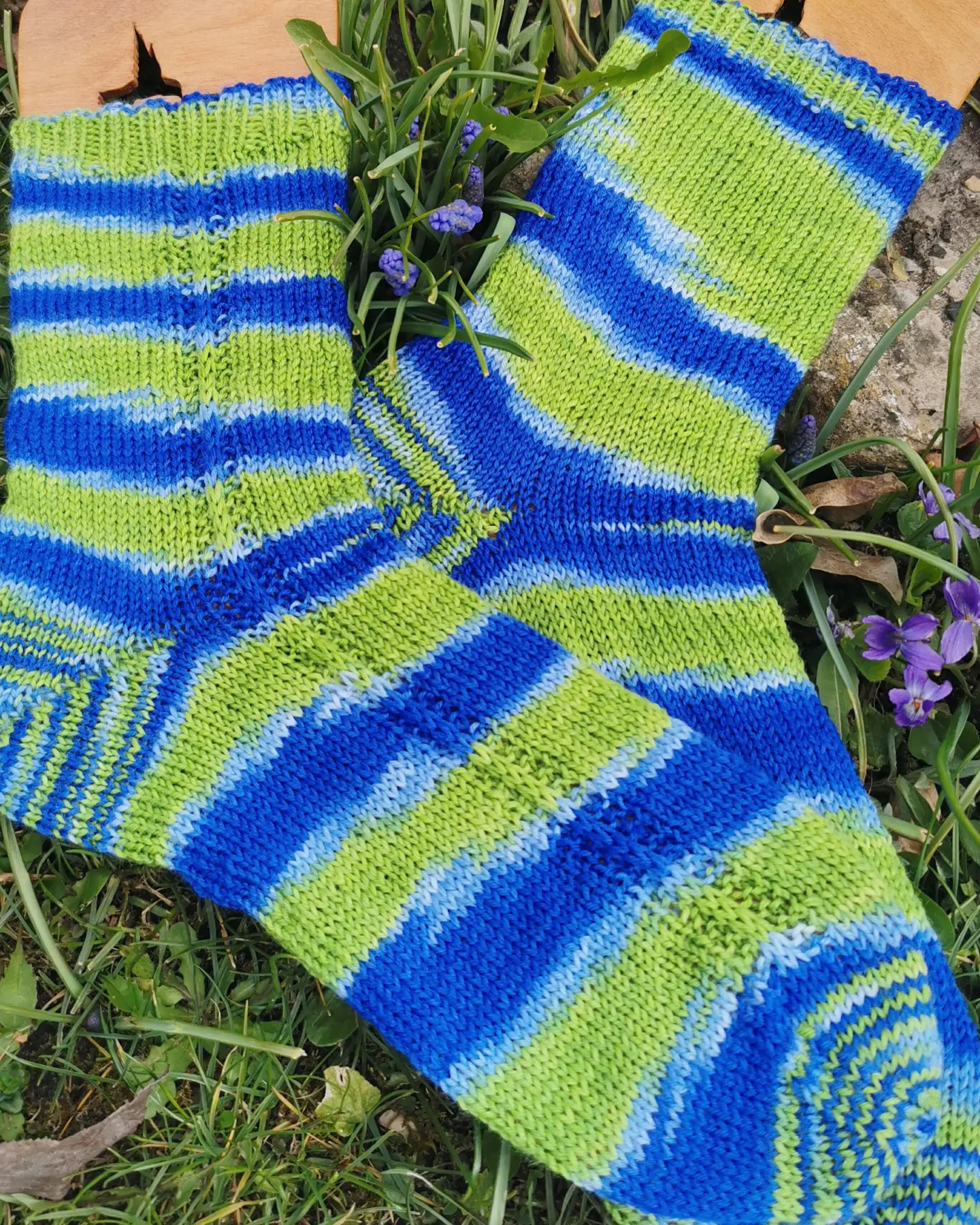 Von diesem Garn und der Sonderaktion dafür hatte ich ja bereits berichtet. Noch im April entstand daraus dieses Sockenpaar als Teil des Geburtstagsgeschenks für meinen Mann.
