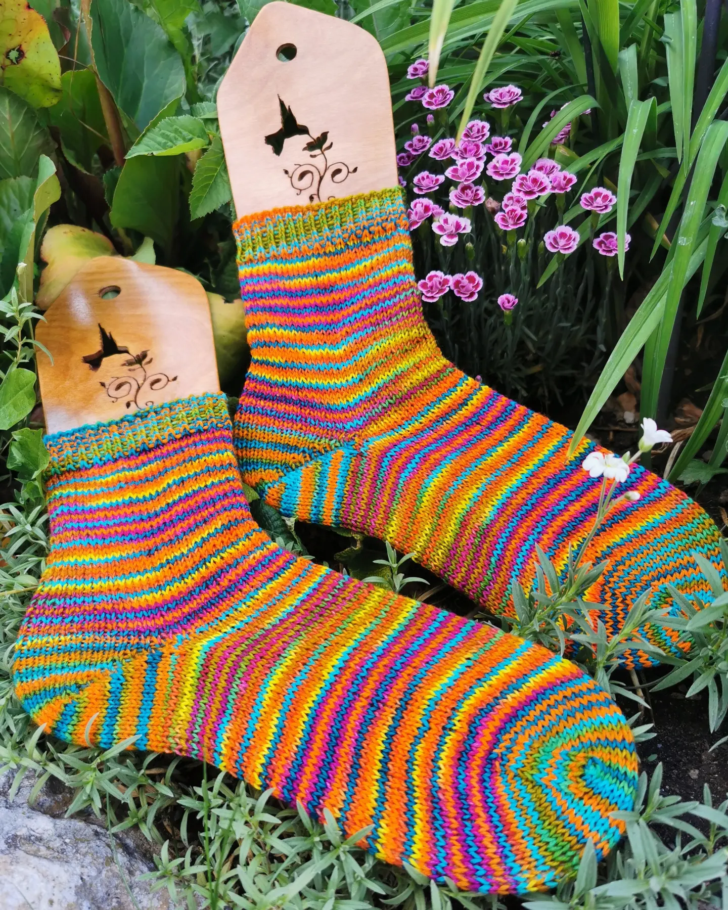 Es ist einfach immer wieder spannend zu sehen wie sich so eine Socke aus unterschiedlichen Farbkombinationen entwickelt und teilweise noch nichtmal nach Resten aussieht.