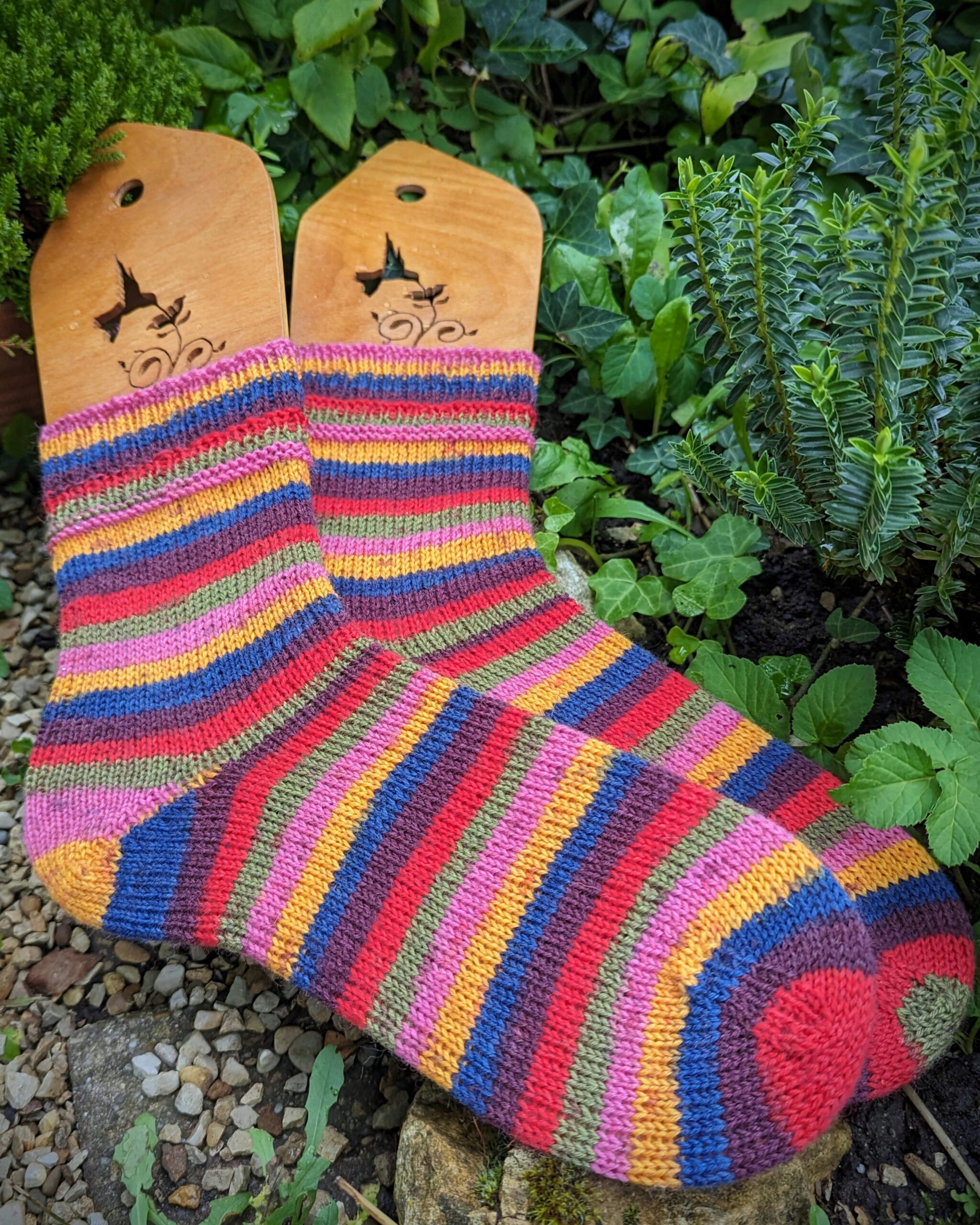 Das erste Paar aus einem der neuen Knäuel von “West Yorkshire Spinners” in der Farbe Nr.1027 Zandras Rainbow. Ich war sehr gespannt auf das Garn und wurde nicht enttäuscht.Tolles Maschenbild, herrliche Farben, sehr griffig und angenehm zu stricken. Inzwischen sind sie auch bereits erfolgreich getragen und gewaschen. Absolute Empfehlung!