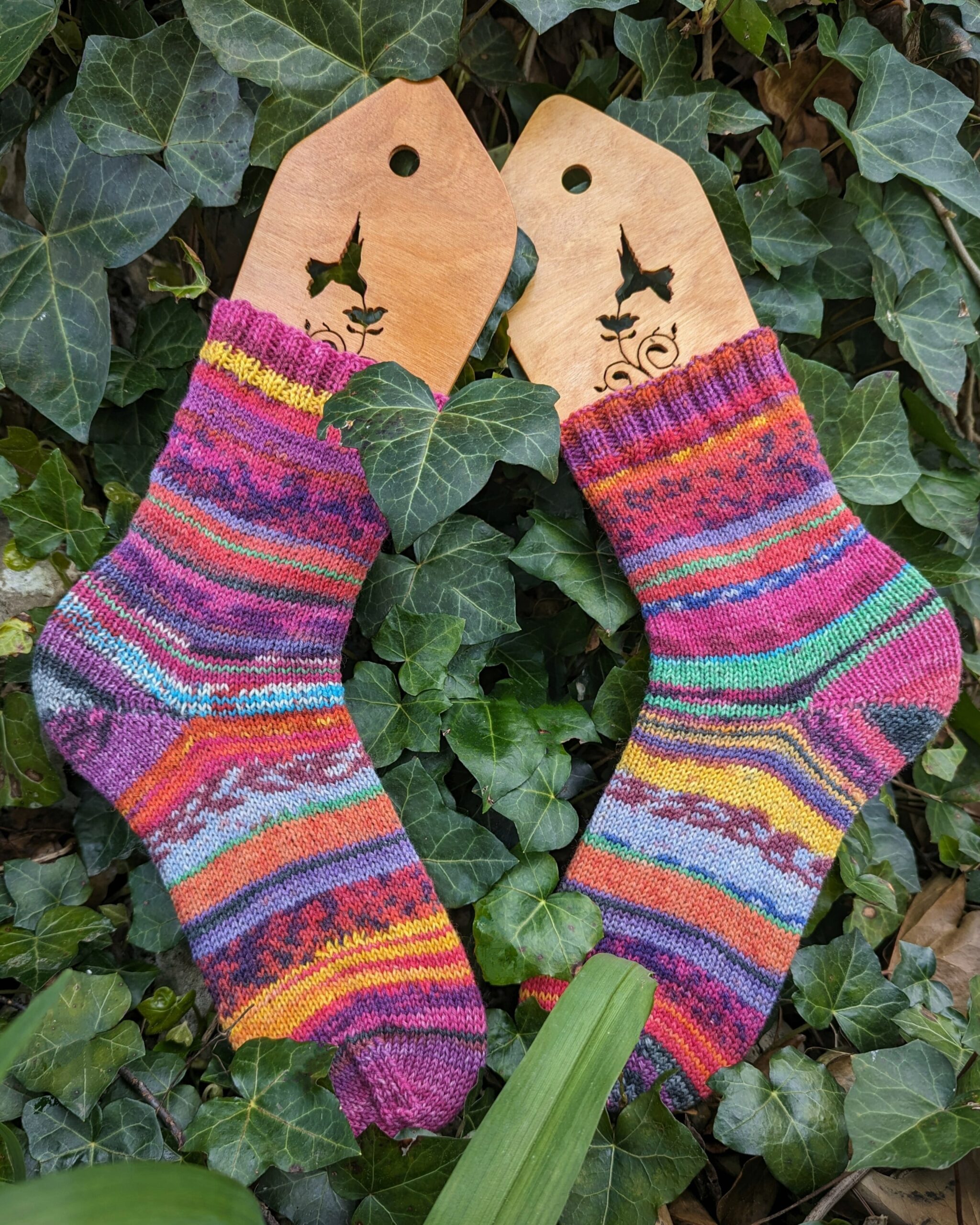 Ganz klassische Happycrappy Socken aus diversesten Opal Abo Resten. Insgesamt 58g für eine Gr.39/40. Gestrickt mit NS 2,25mm bei 60 Maschen.