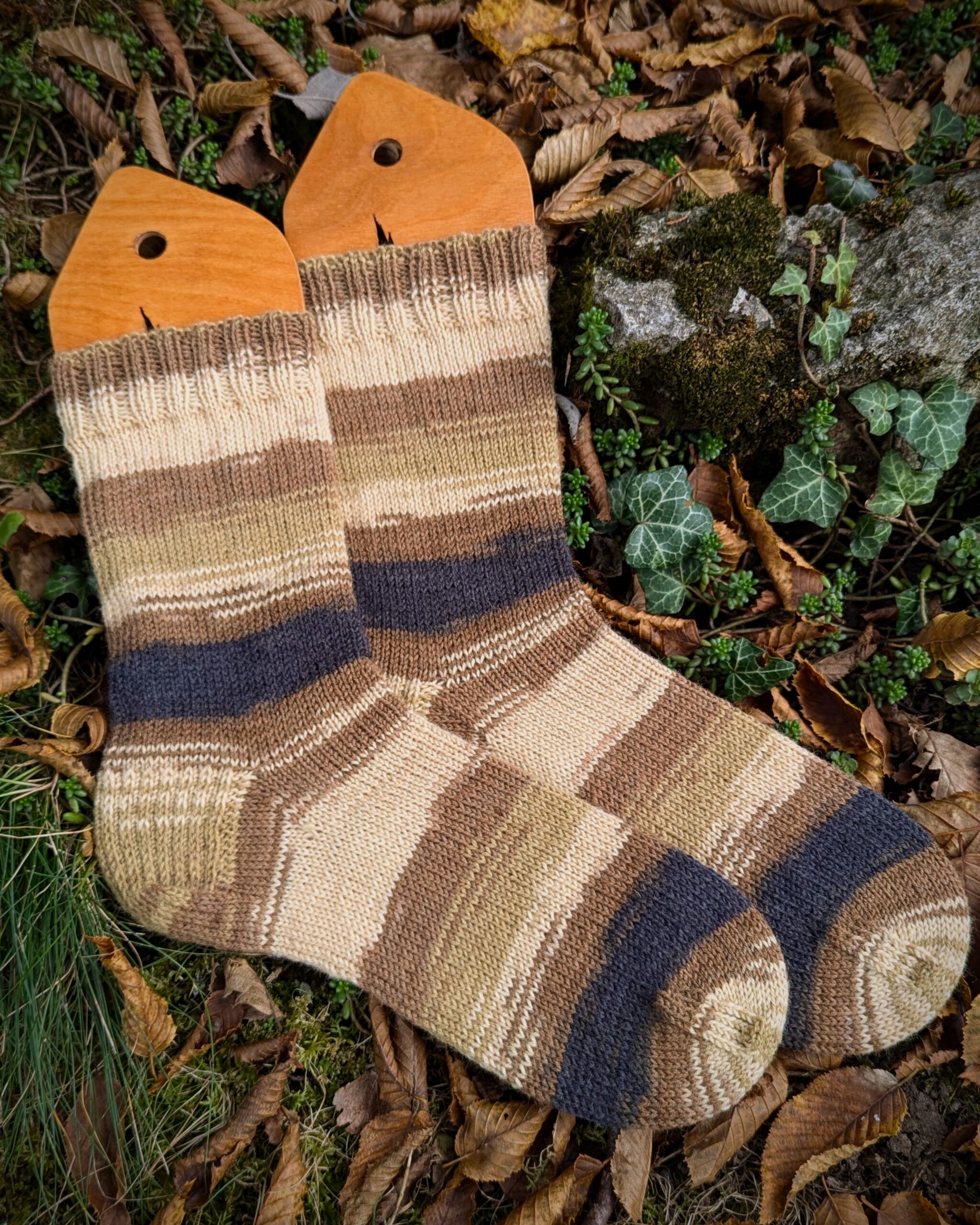 Hier…unschwer zu erkennen…ein klassisches Männerpaar in schönen Naturtönen mit Sockenwolle von Buttinette.