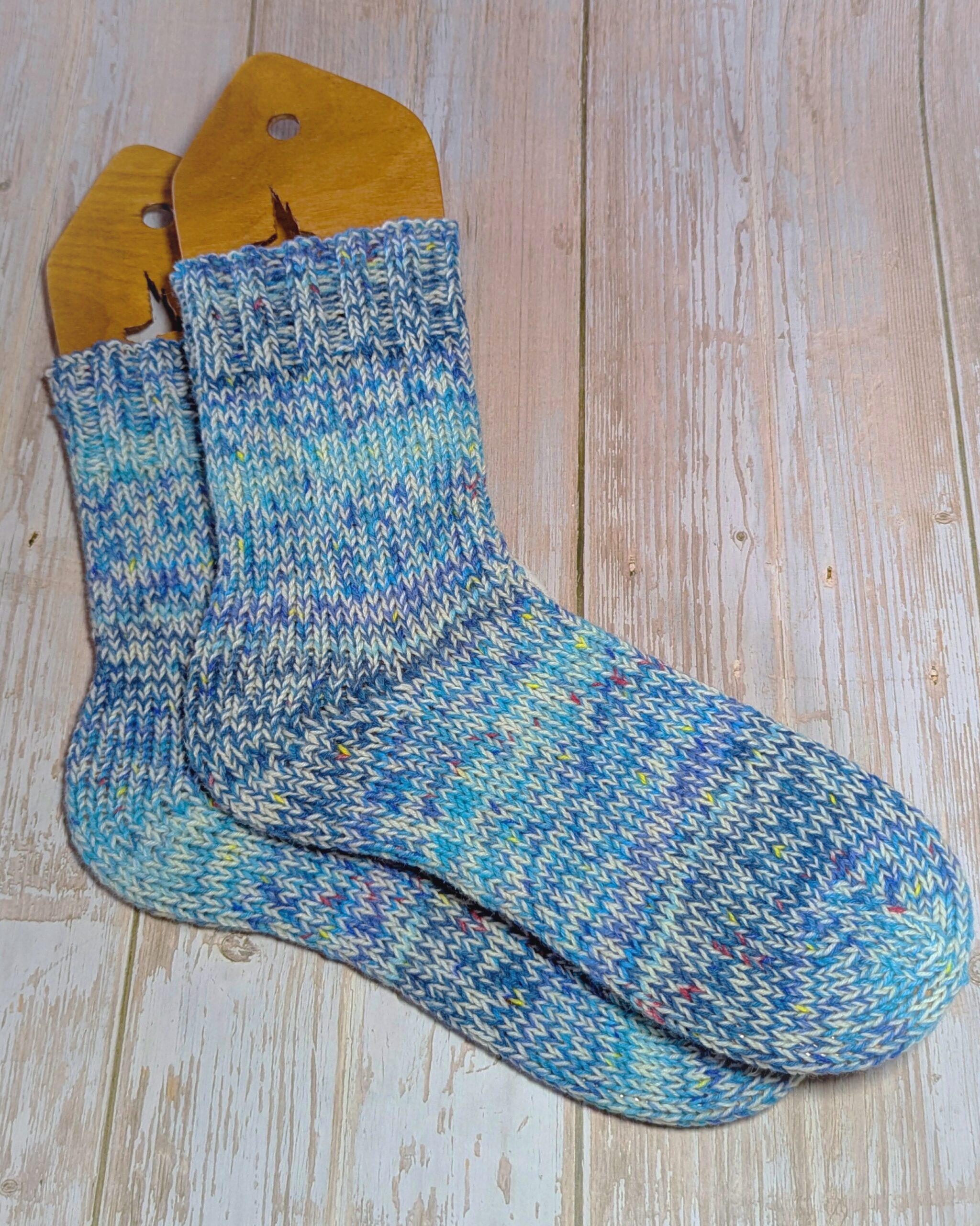 Gestrickt habe ich mit einer NS 3,5mm…eher versehentlich, denn ich wollte sie eigentlich mit 4mm stricken und erst bei der zweiten Socke fiel mir auf, dass ich mich wohl vergriffen hatte. Aber sie passen perfekt und vermutlich wären sie mir mit 4mm tatsächlich etwas zu weit geraten. Insofern sollte es wohl so sein.🙃