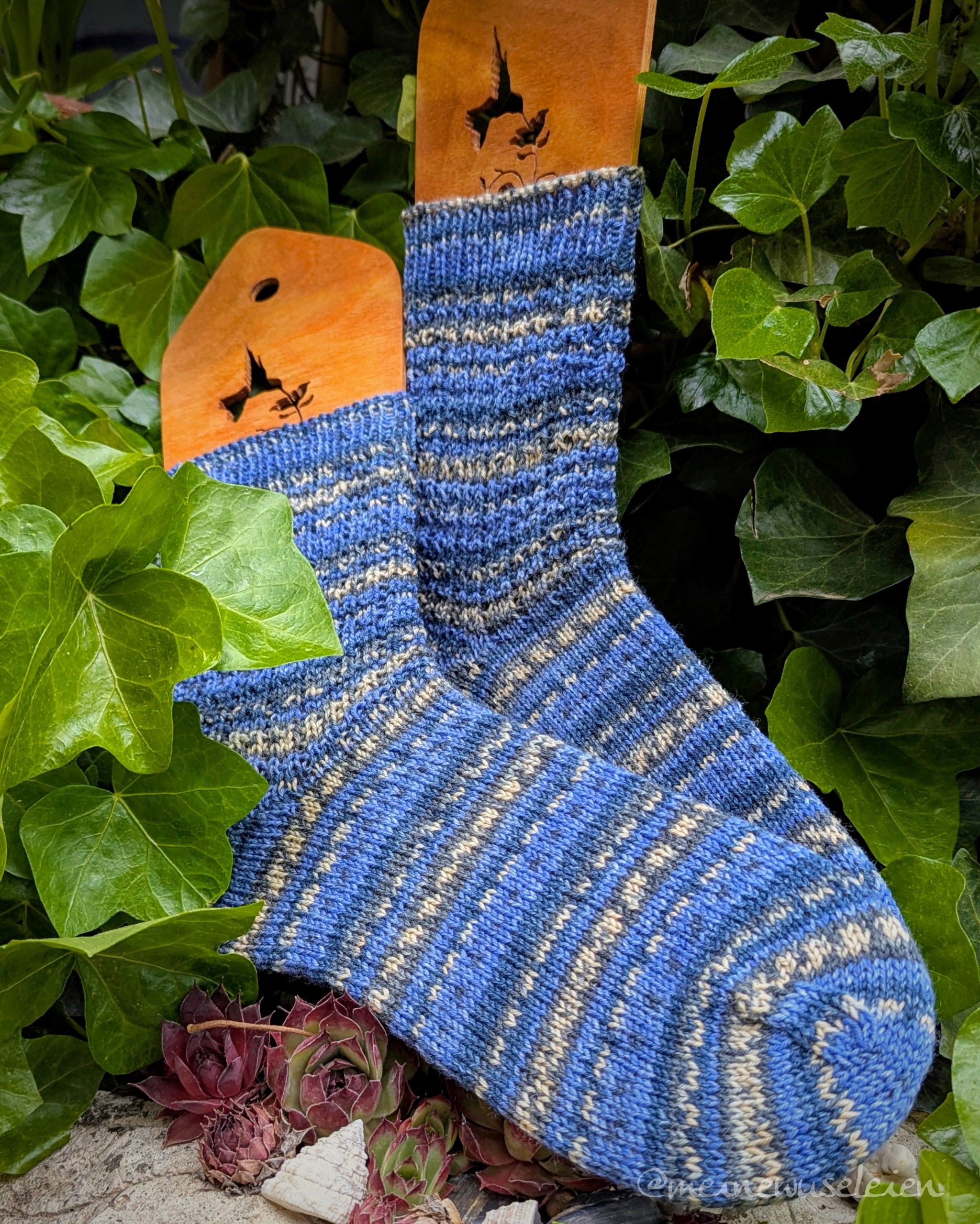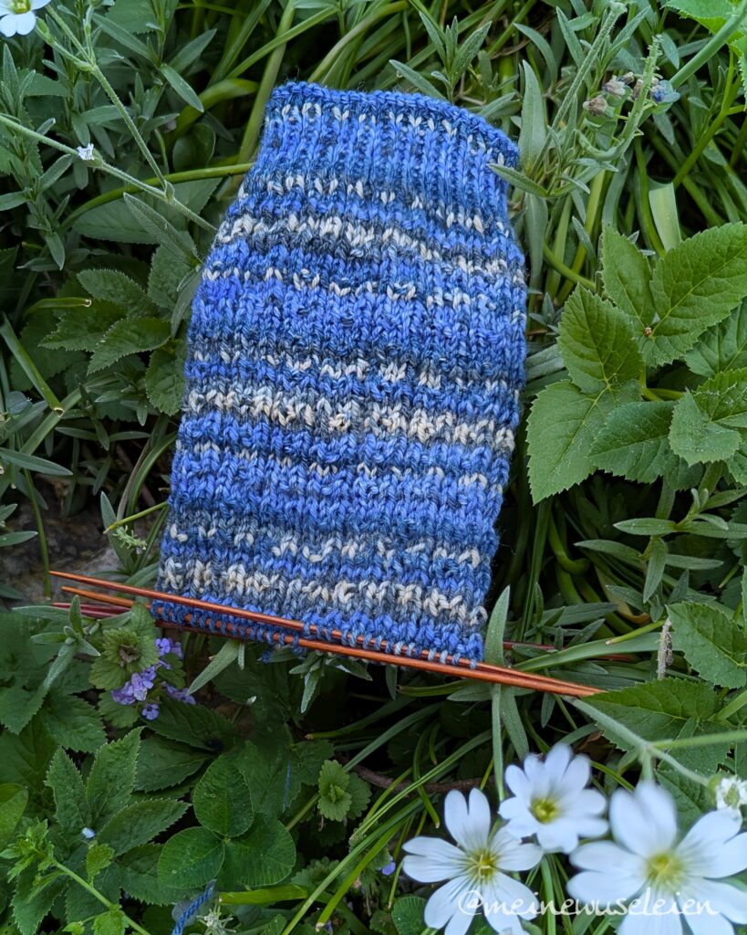 Am Schaft habe ich das “Petty Harbour Socks” Muster von Rayna Curtis gestrickt. Eigentlich wollte ich es über die ganze Socke fortführen… gefiel mir dann aber zu dieser Färbung nicht so gut wie gedacht. Ribbeln wollte ich jedoch auch nicht. Also habe ich es letztendlich nur am Schaft gestrickt. Das Gesamtergebnis gefällt mir nun aber trotzdem ganz gut. Das Muster an sich eignet sich dann doch besser für unifarbene oder zumindest etwas ruhiger gemusterte Wolle.