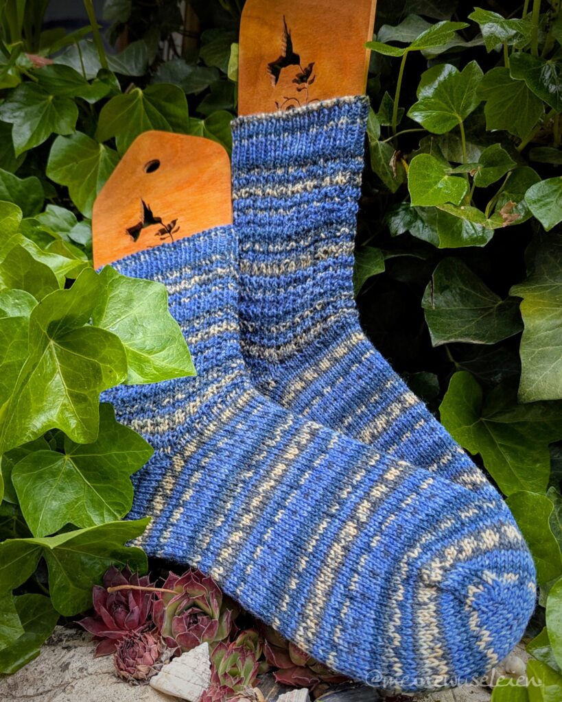 Meine (quasi) Urlaubssocken. Quasi, weil ich sie extra als Urlaubsprojekt angeschlagen hatte, dort aber tatsächlich fast gar nicht zum Stricken kam. Naja… zumindest 1/3 entstanden tatsächlich dort.😉