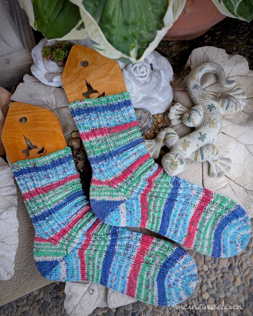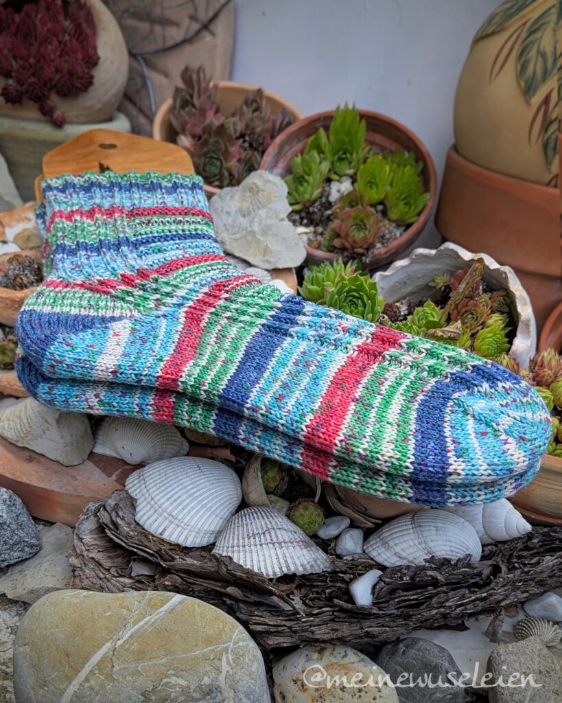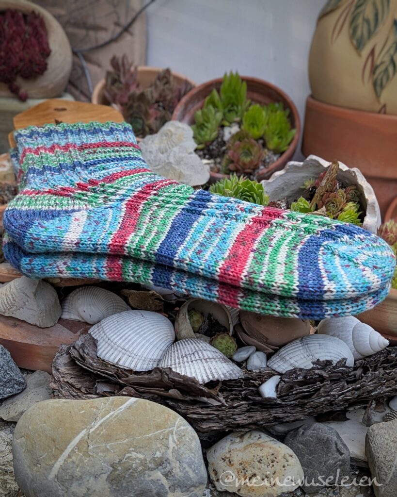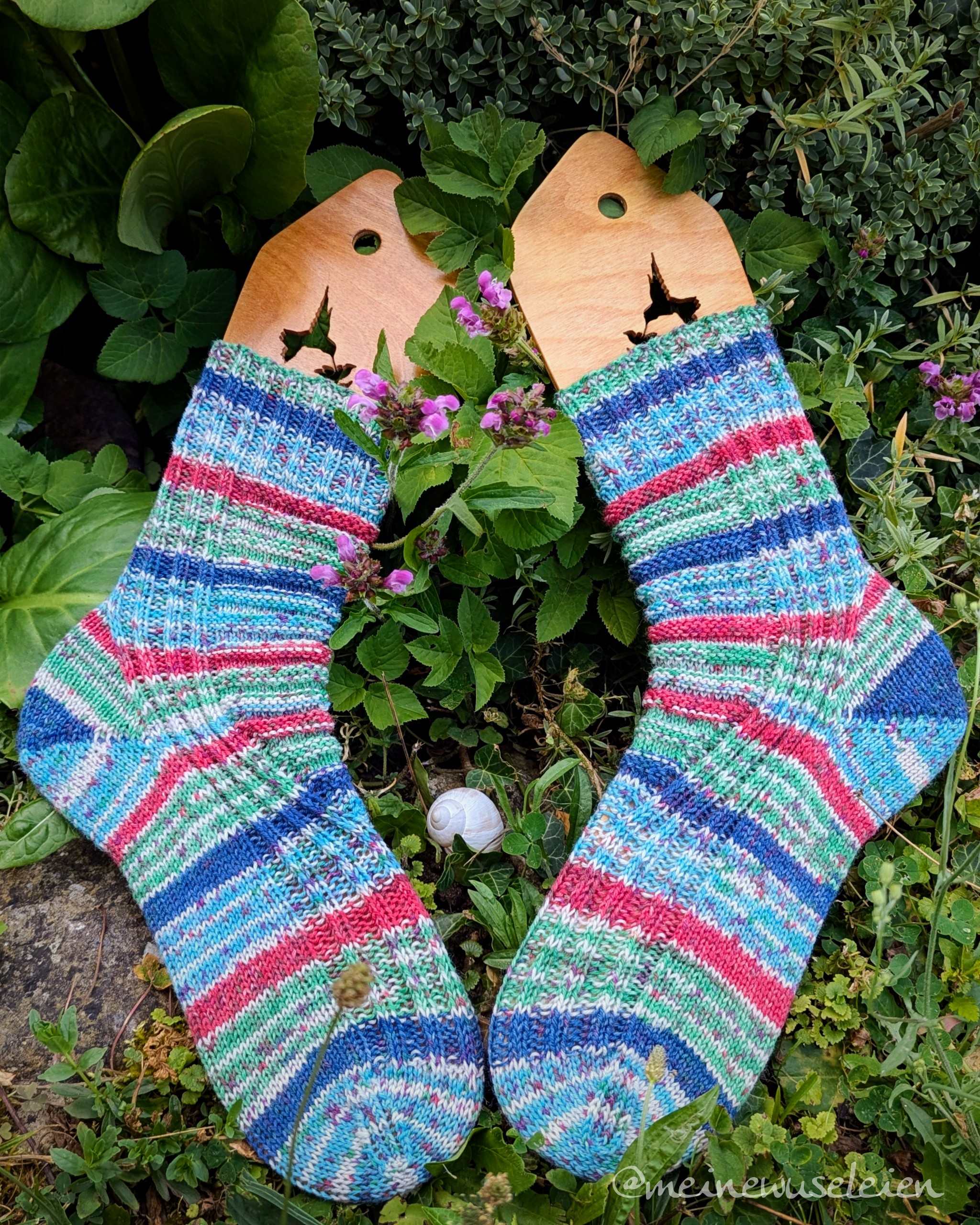 Das hat Spaß gemacht! Neue Sucht freigeschaltet.🤓 Die “Dehnungsfuge” stand schon ewig auf meiner Tapetenrolle, aber irgendwie war es dann doch bequemer überwiegend immer wieder mein gewohntes Sockenrezept zu stricken. Nicht Nachdenken müssen und so…..🙃