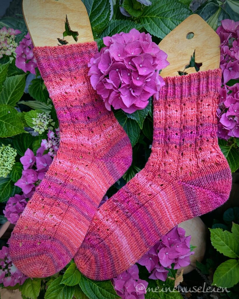 Ein passendes Muster war, Ravelry sei Dank, schnell gefunden. “Mahogany Run Socks” von Kay Litton (eine Kaufanleitung in englischer Sprache, gut verständlich).